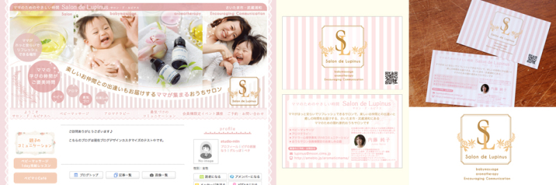 (制作例)アロマ&ベビーマッサージ講師/おうちサロン教室ブログ・名刺教室カード/オリジナルロゴ