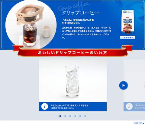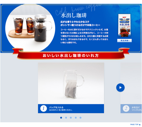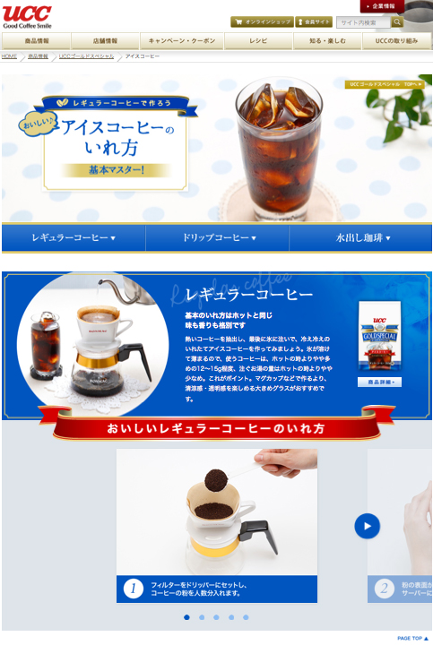 UCC様ゴールドスペシャルのアイスコーヒー特集WEBページにてすべてのイメージのスタイリング(グラス類/クロス/各撮影小物の選定とセッティング)と